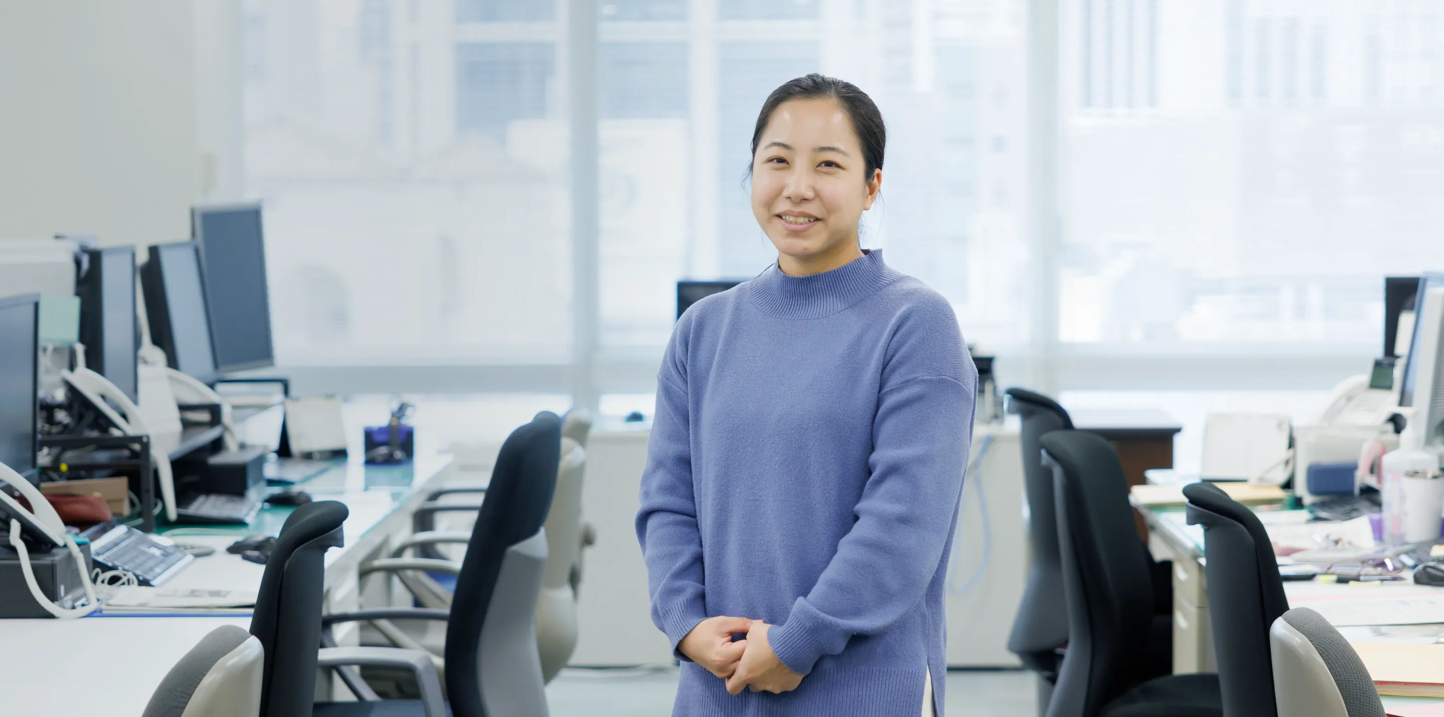 就職活動は、「営業職」とは希望していたものの業種は決めておらず、偶然インターンシップに参加したのが三井住友トラスト不動産との出会い。そのとき、「想いまで託される仕事を。」に共感し、「お客さまの想いを大事に、誠実・正直に向き合う仕事がしたい」と思ったことが入社の決め手になり、営業職として入社。入社5年目の時の産休育休経て、本部の営業アシスタント職に。復職して2年目の現在、仕事と子育てを両立する多忙な日々。